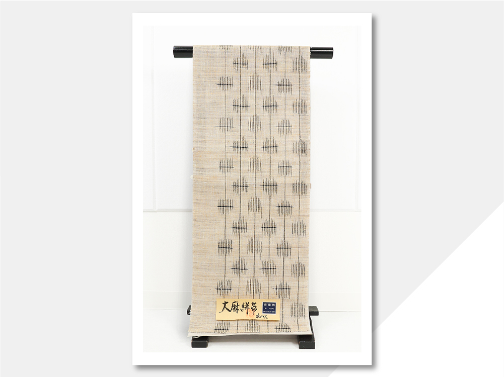 伝統的な掠りの技法と麻の素材感が魅力の夏帯です。