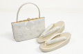 華千年 帯地 草履バッグセット 礼装用 草履 Lサイズ 花紋 バッグ・鼻緒 淡いシルバー