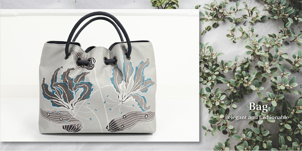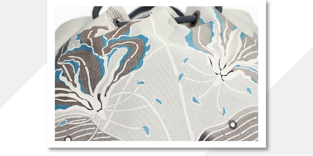 あづまやオリジナル 栗山工房 紅型染め 正絹帯地 バッグ グロリオサ グレー