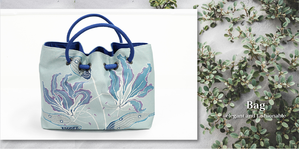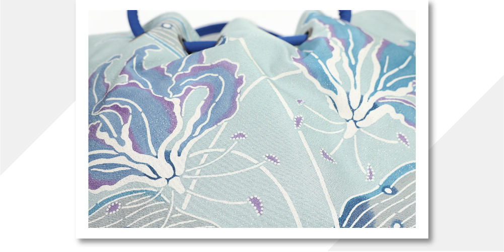 あづまやオリジナル 栗山工房 紅型染め 正絹帯地 バッグ グロリオサ ブルー
