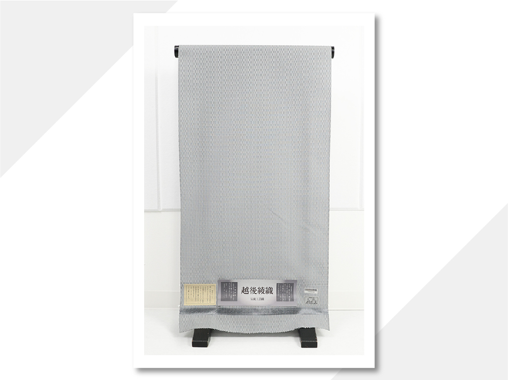 正絹 お召 越後綾織 紬 市松格子 灰色