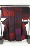 正絹 着物 紬 いろかさね 赤紫