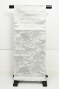 蔦屋久兵衛 ひとえ八寸帯(兵児帯) 恐竜 白灰×銀