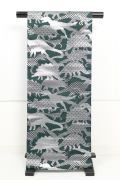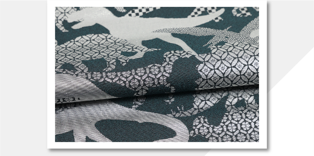 蔦屋久兵衛 ひとえ八寸帯(兵児帯) 恐竜 深緑×銀