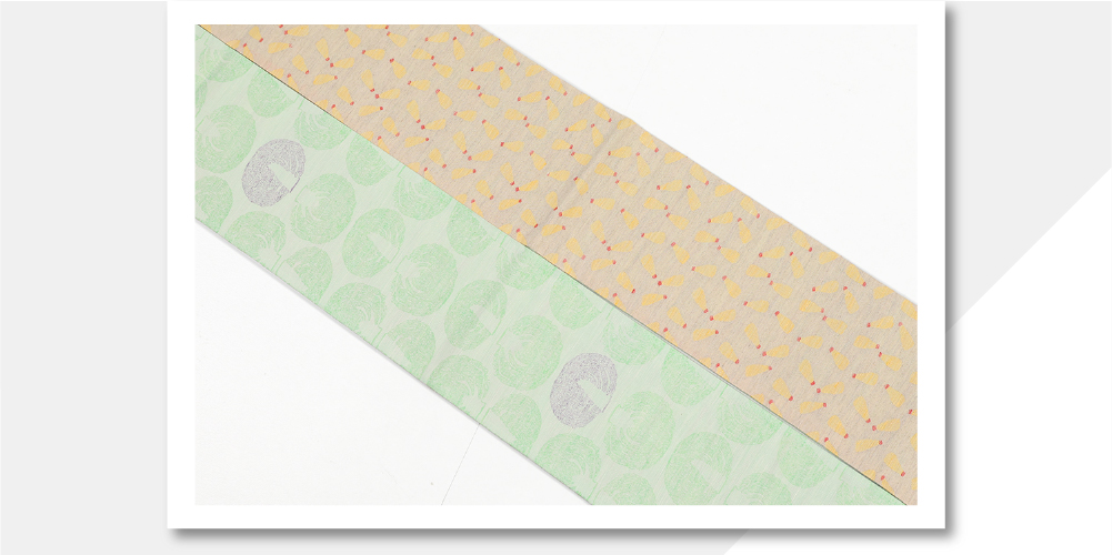 西陣織 蔦屋久兵衛 絹麻両面半幅帯 キャベツ マヨネーズ 緑×ベージュ