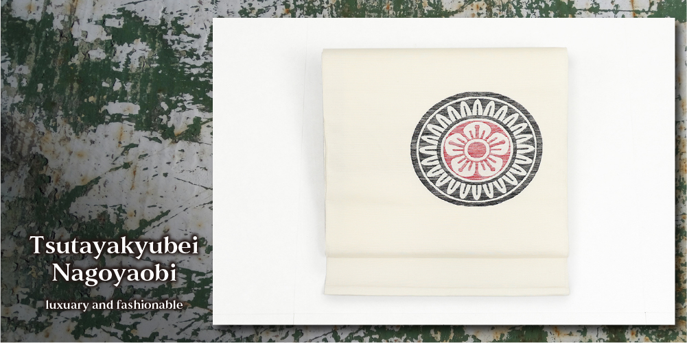 麻雀牌の一筒を配した名古屋帯です。