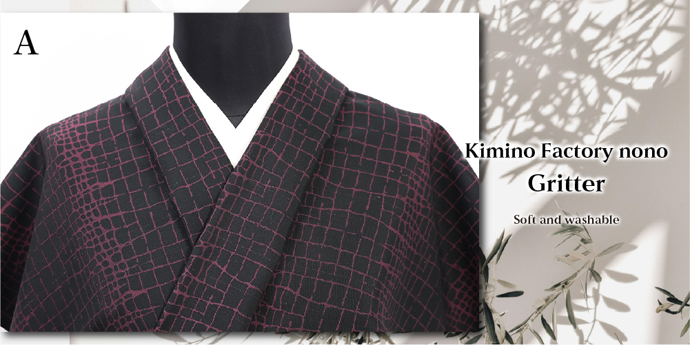 Kimono Factory nono 木綿着物 GRITTER (グリッター) オーダー仕立て付き ナイル 黒×紫