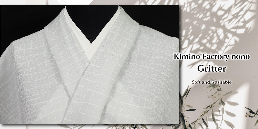 Kimono Factory nono 木綿着物 GRITTER (グリッター) オーダー仕立て付き ナイル 白灰×白