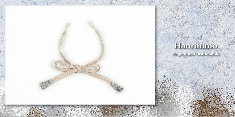 女性用羽織紐 正絹 組紐 ベージュ×灰