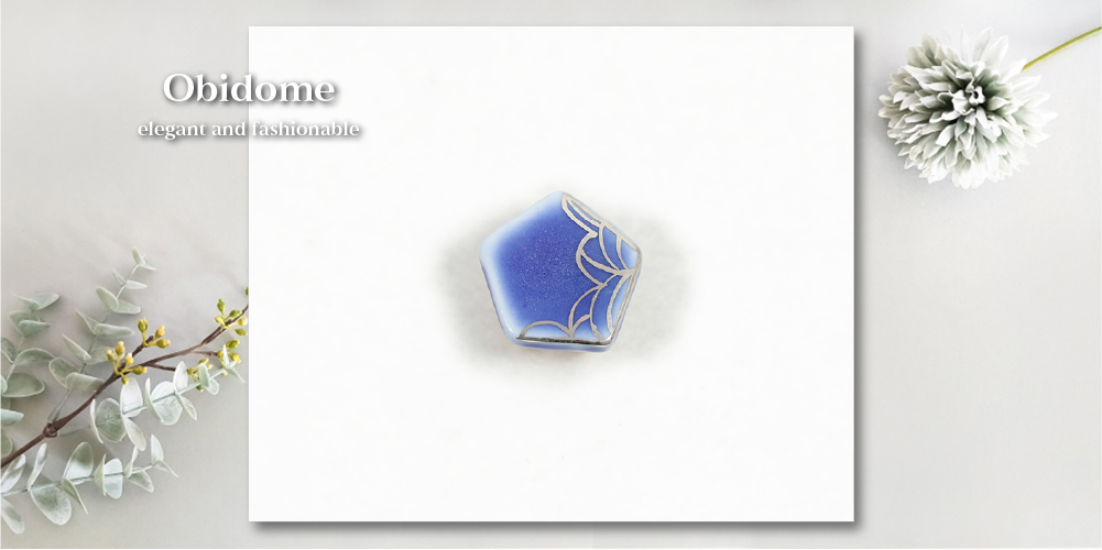 Cyan 帯留め 彩磁 瀬戸染付 イーリス 六角 瑠璃