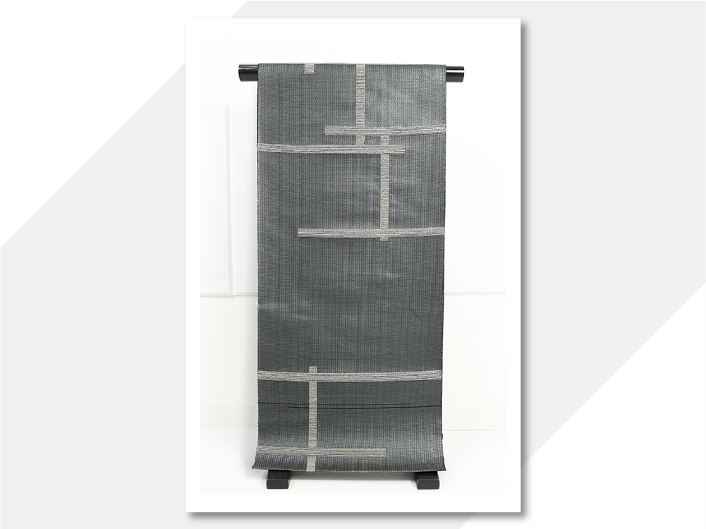 誉田屋源兵衛 正絹 九寸名古屋帯 破れ格子 濃い灰色