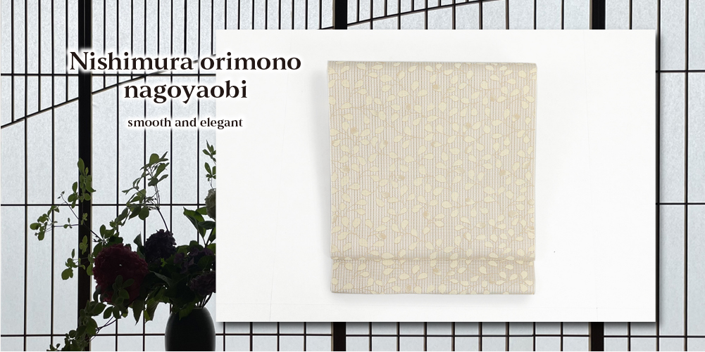 西村織物 博多織 正絹 八寸名古屋帯 紋八寸 紋ひとえ ゆらり萩 アイボリー