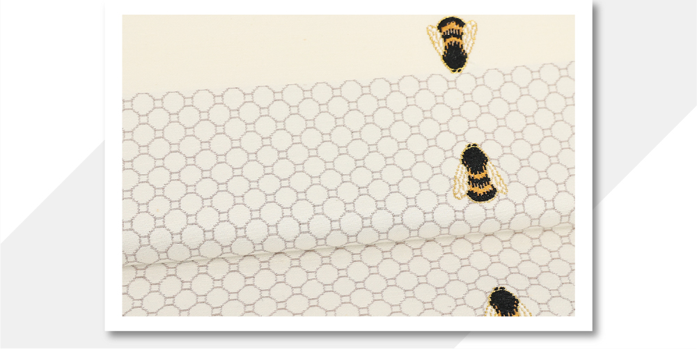 蜂と蜂の巣のハニカムをシンプルにデザインした帯です。