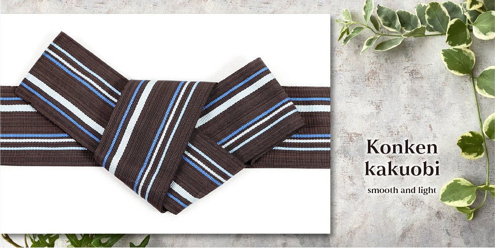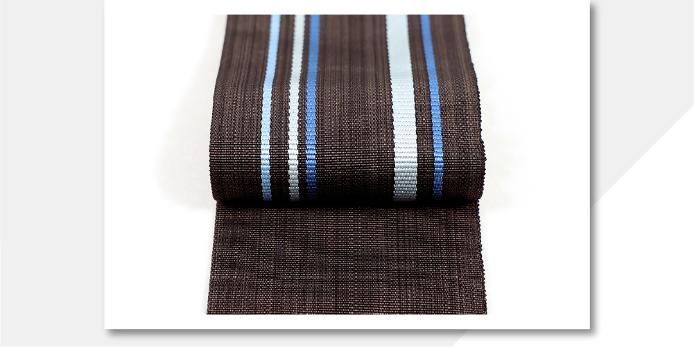 米沢織 近賢織物 角帯 遥三寸 茶×水色