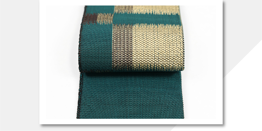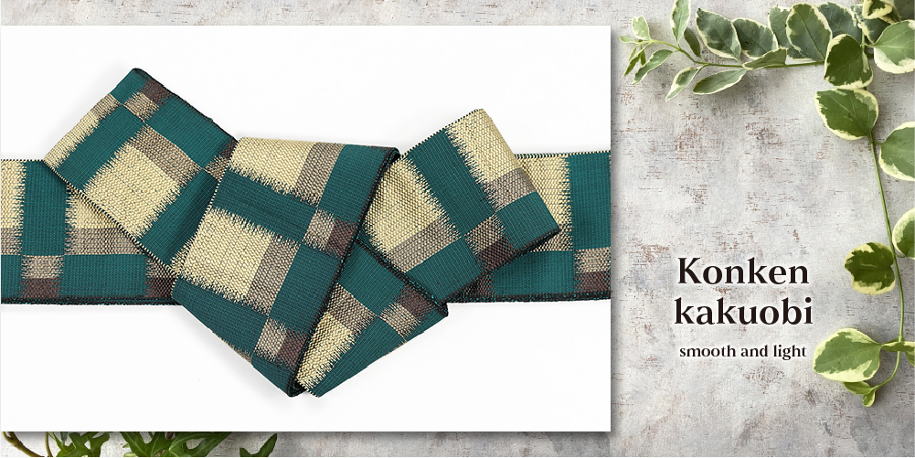 米沢織 近賢織物 角帯 東雲 緑×ベージュ