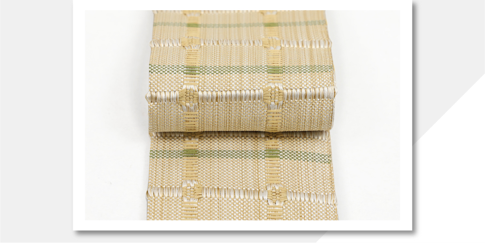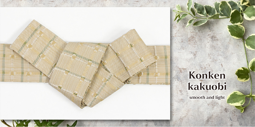 米沢織 近賢織物 角帯 和紙 紙格子 生成り×緑