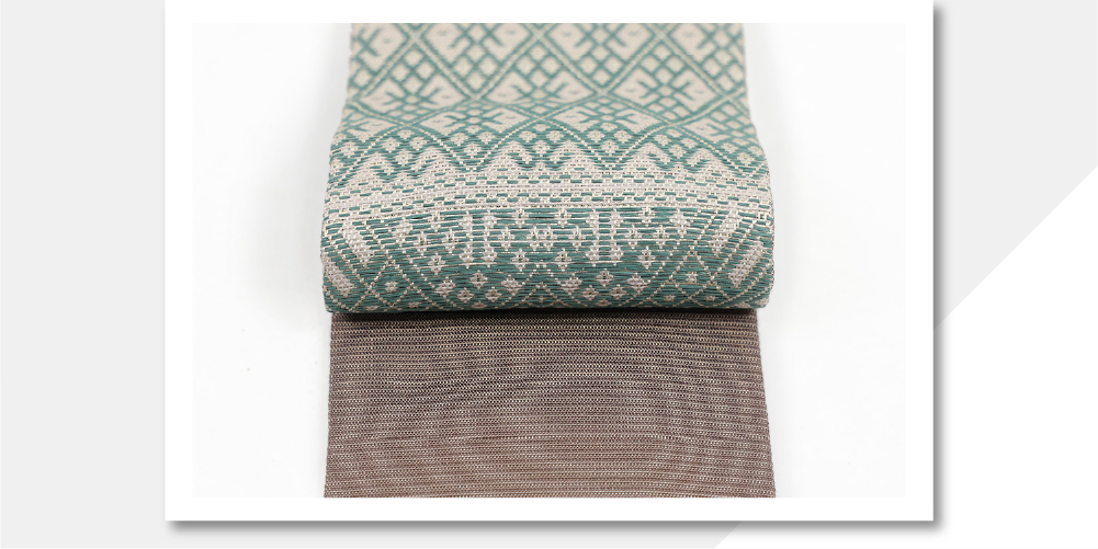 米沢織 近賢織物 角帯 和紙 紙こぎん 青緑×茶