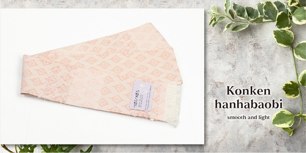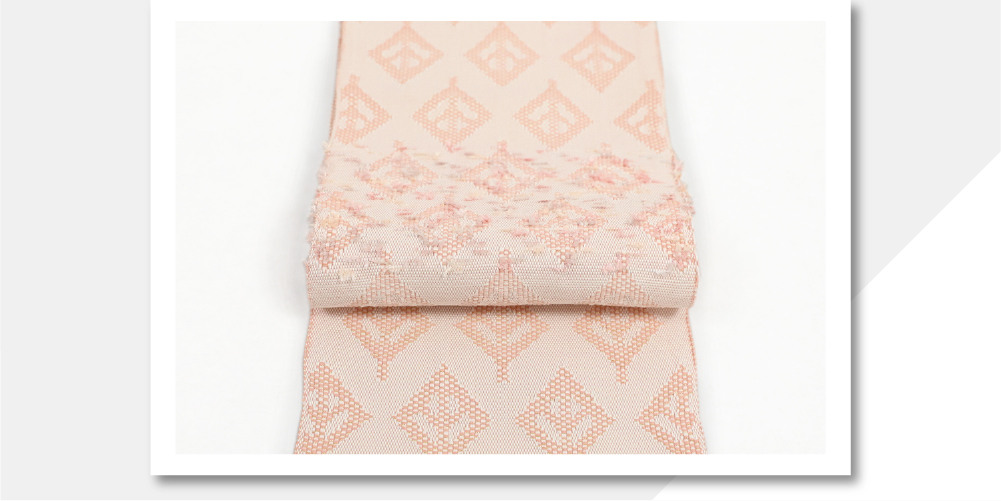 米沢織 近賢織物 半幅帯 つばらつばら 菱形リーフ ピンク