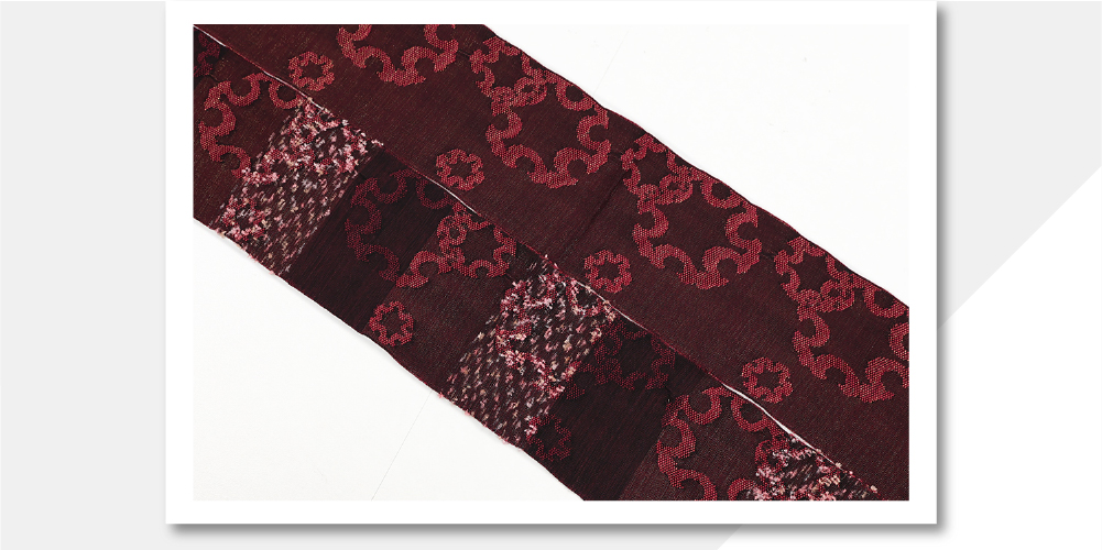 当店ではほつれ防止のため、帯端はかがり仕立てをおすすめしております。(房がある場合は房を切ってかがっております。)