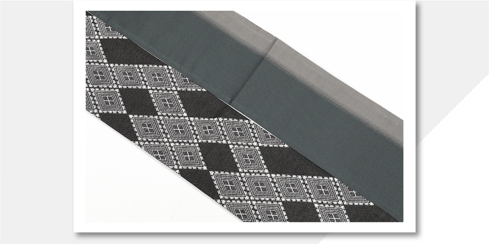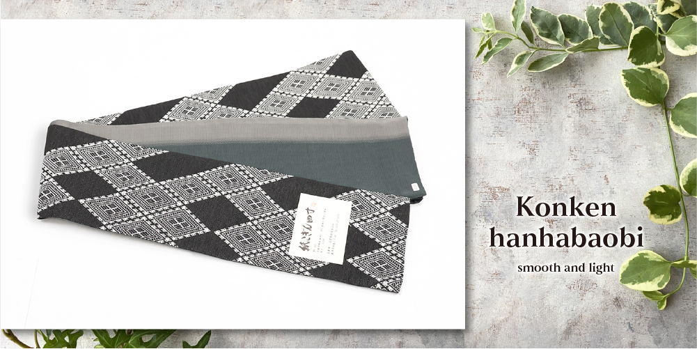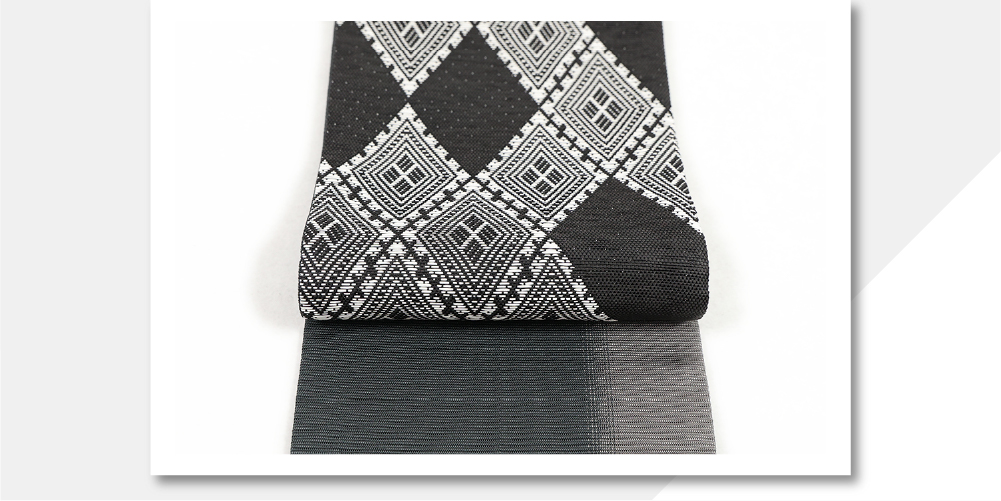 米沢織 近賢織物 半幅帯 紙こぎん四寸 ランダム菱 黒×白