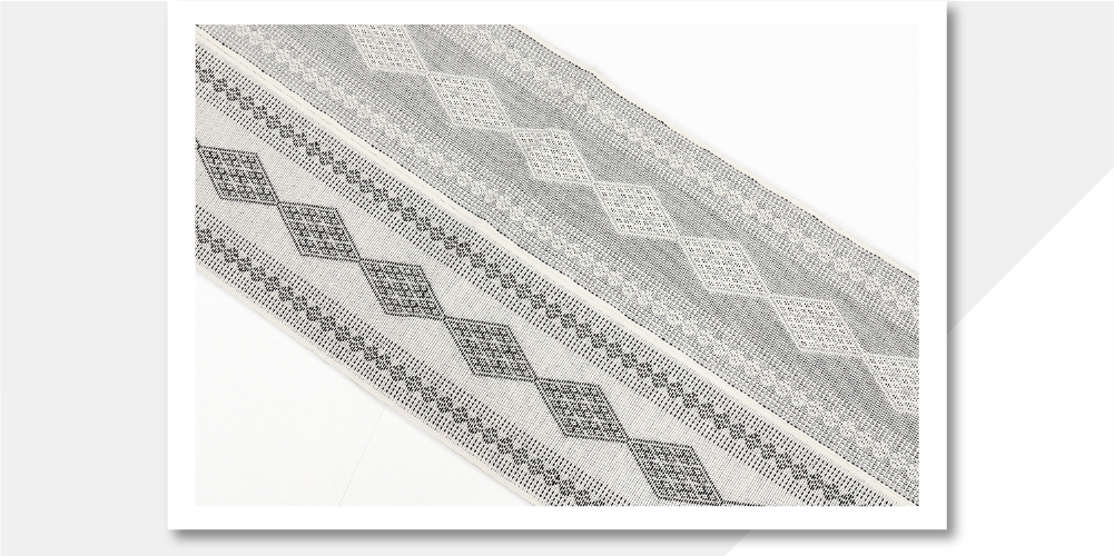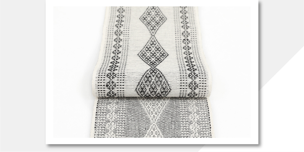 米沢織 近賢織物 半幅帯 シャンヴル 麻帯 菱つなぎ 白×黒