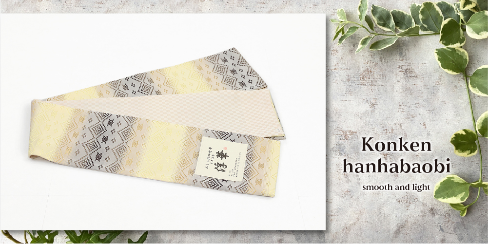 近賢織物謹製、上品な正絹半幅帯をお届けします。
