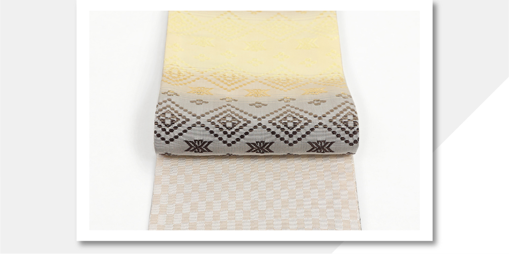 米沢織 近賢織物 半幅帯 リバーシブル 浮華 灰色×薄黄色×ベージュ
