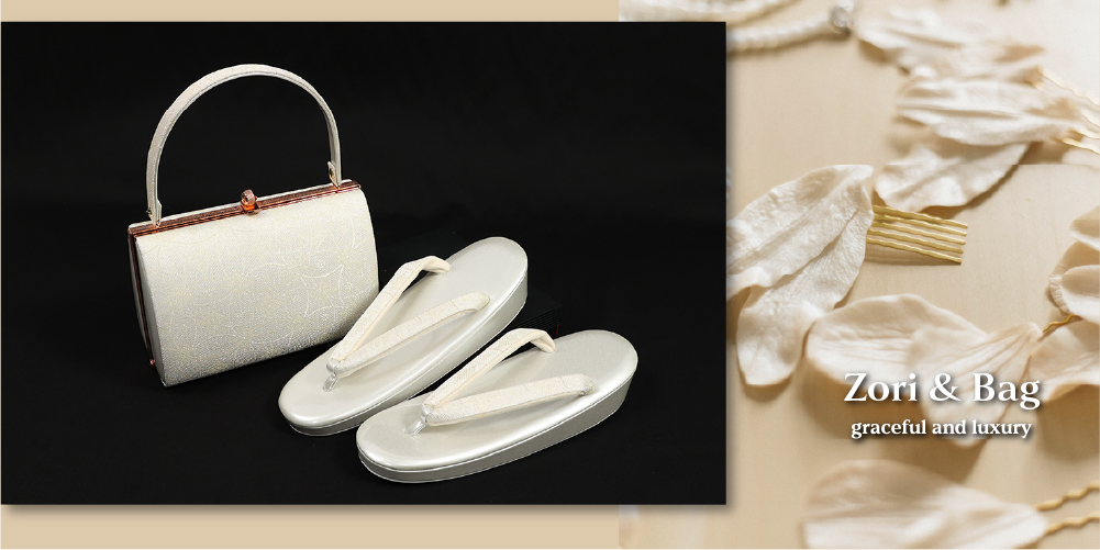 帯地は草履の鼻緒とバッグ本体部分に使用されています。