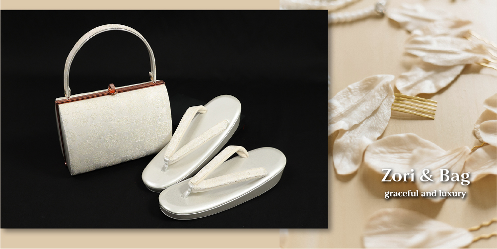 帯地は草履の鼻緒とバッグ本体部分に使用されています。