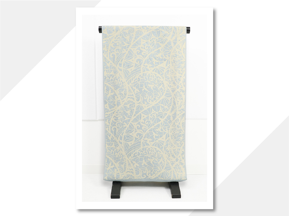 正絹 お召し ステンドグラス 水色