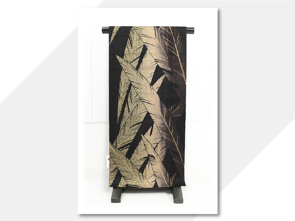 小室庵 正絹 九寸名古屋帯 芭蕉 黒×ベージュ