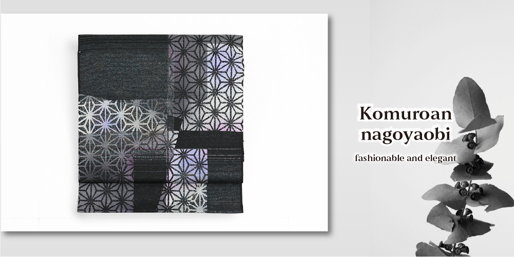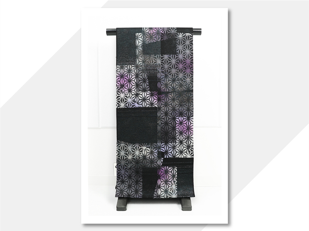 小室庵 正絹 九寸名古屋帯 麻の葉裂取り 黒×紫
