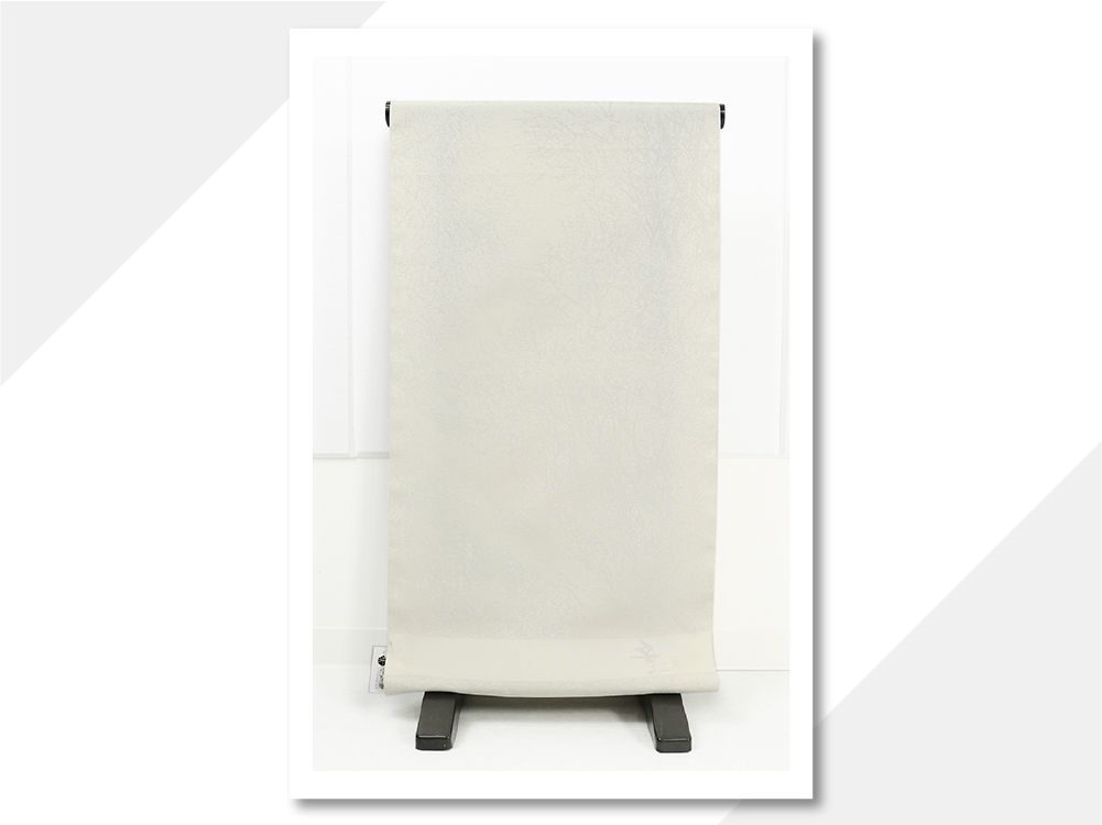 小室庵 正絹 お召し 小紋 広幅 男物 樹林 アイボリー