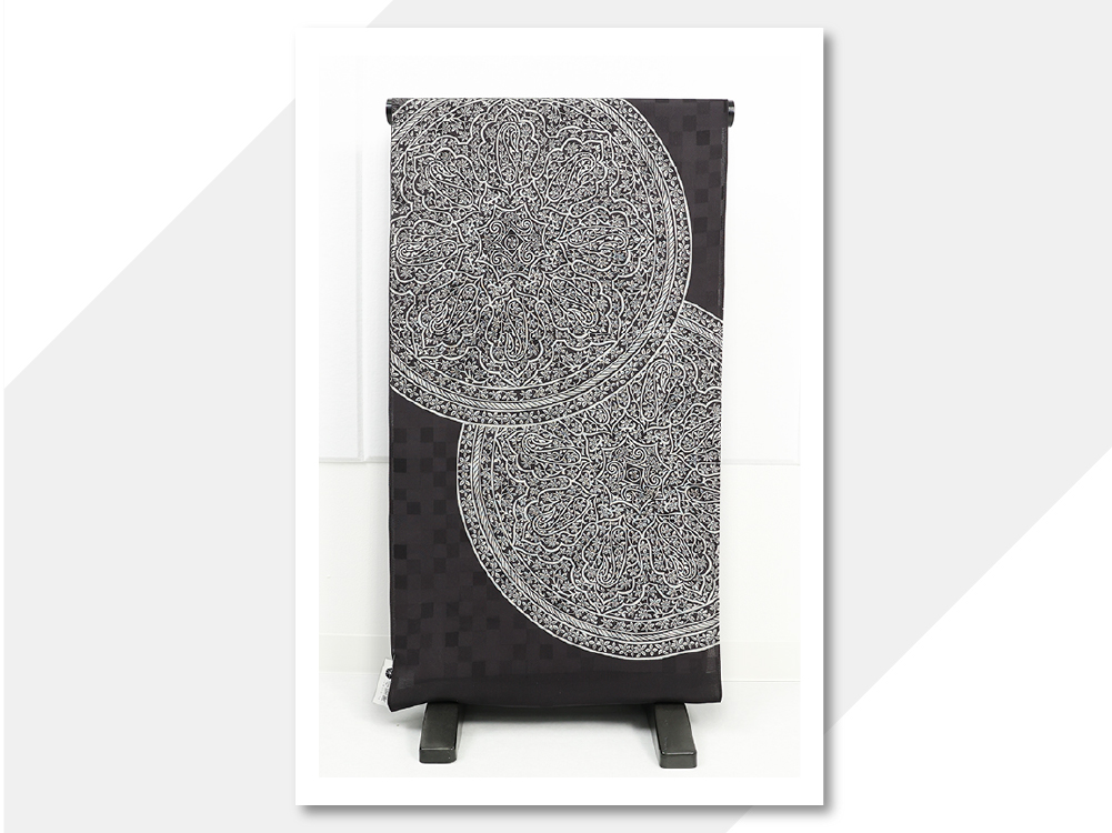 小室庵 正絹 単衣 小紋 お召し アラベスク 黒