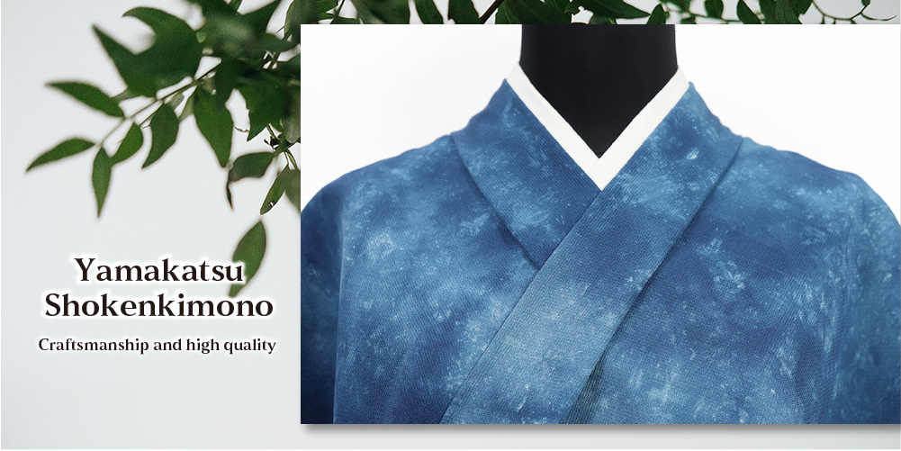 山勝染工 正絹 着物 ワタマサ ネビュラス 籠染め 青