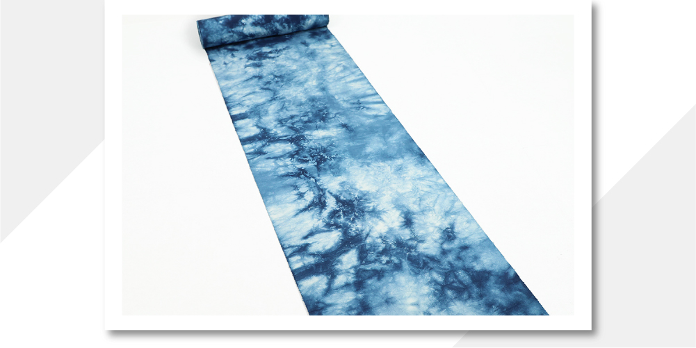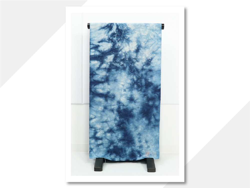 籠染めと呼ばれる技法を独自で進化させた染めで、絞り染めの欠点であった色落ちもほとんどありません。