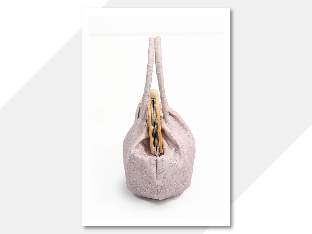 バッグ がま口ハンドバッグ 刺繍 ピンク