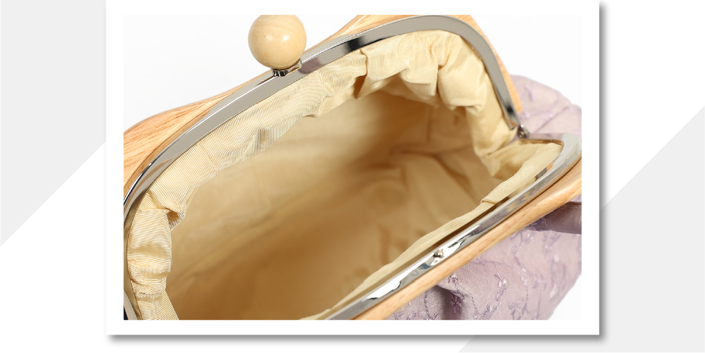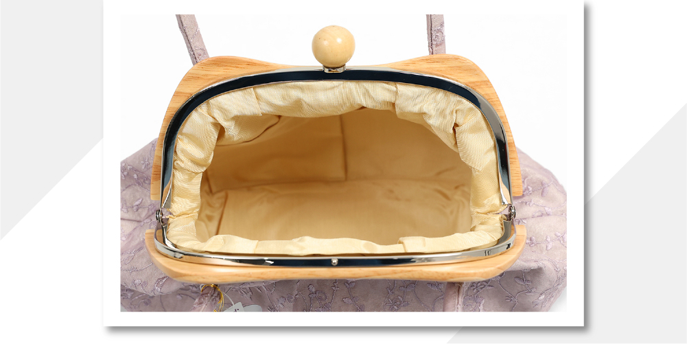木目のおしゃれな口金は、片手で開閉できるます。