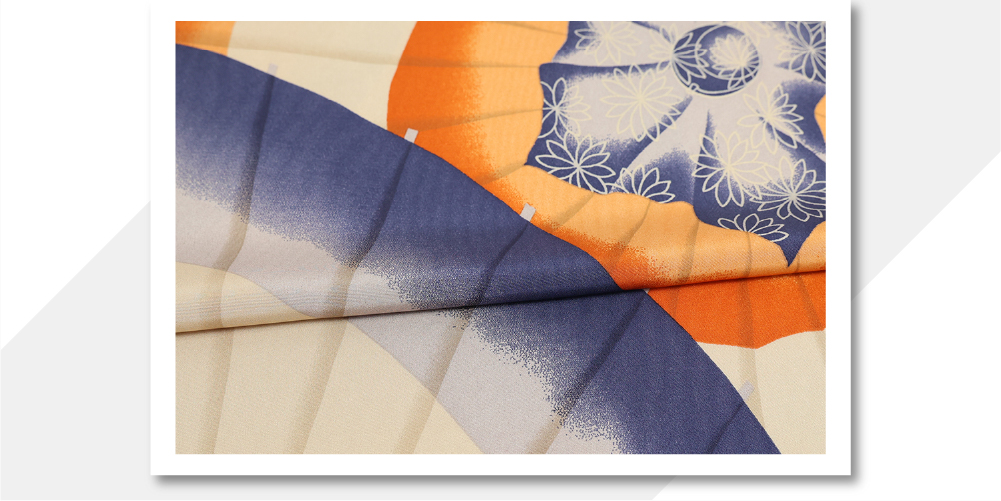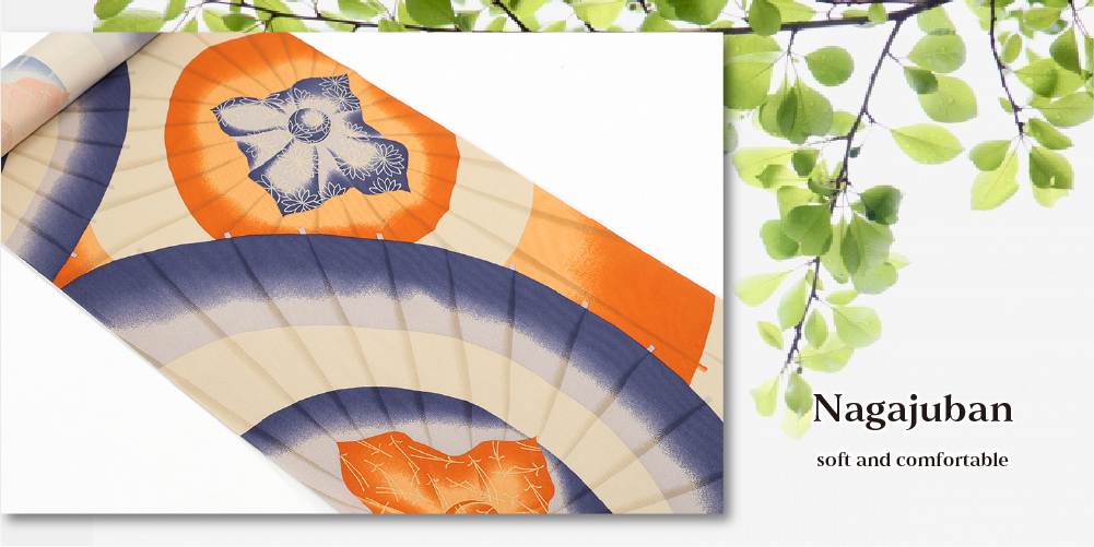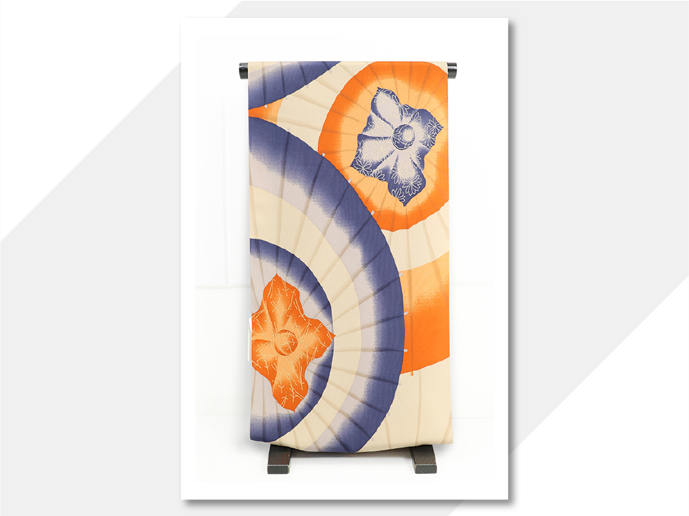 正絹 長襦袢 広幅 傘 ベージュ×青×橙