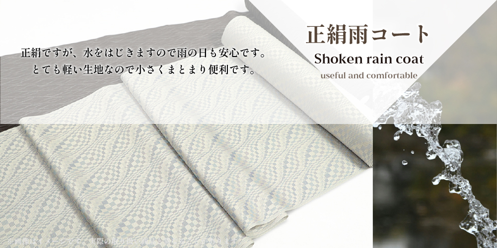 正絹ですが、水をはじきますので雨の日も安心です。