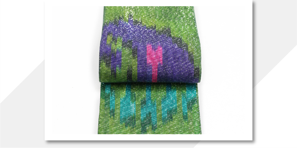 ウズベキスタン 角帯 絣 イカット KO-03 緑×紫