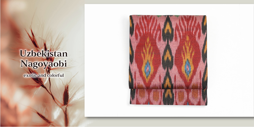 ウズベキスタンの伝統技術を生かした魅力的なイカット名古屋帯です。
