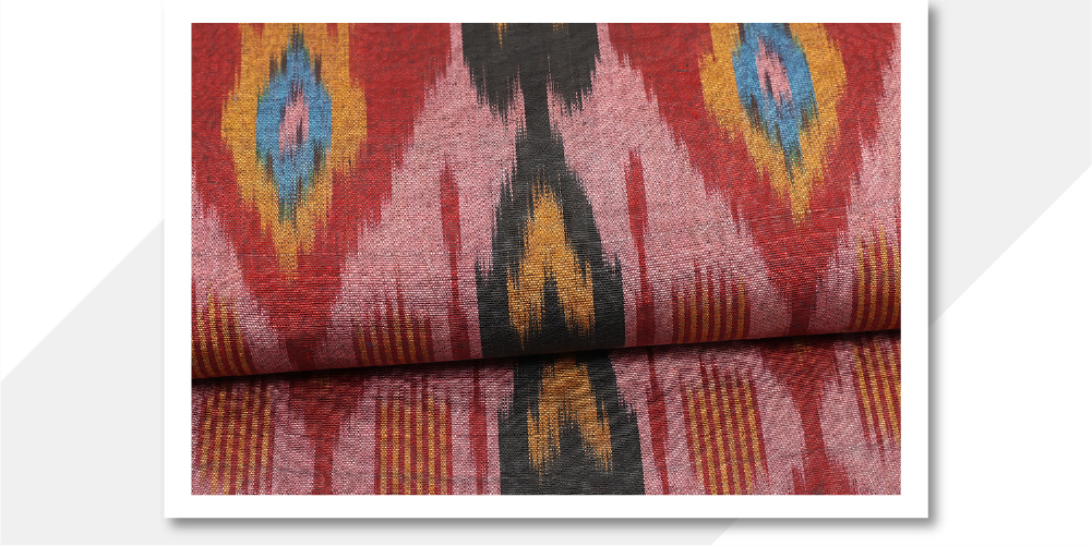 日本の絣と同じような手法で作られ、色鮮やかな柄が特徴です。
