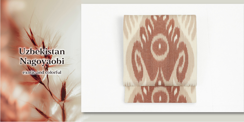 ウズベキスタンの伝統技術を生かした魅力的なイカット名古屋帯です。