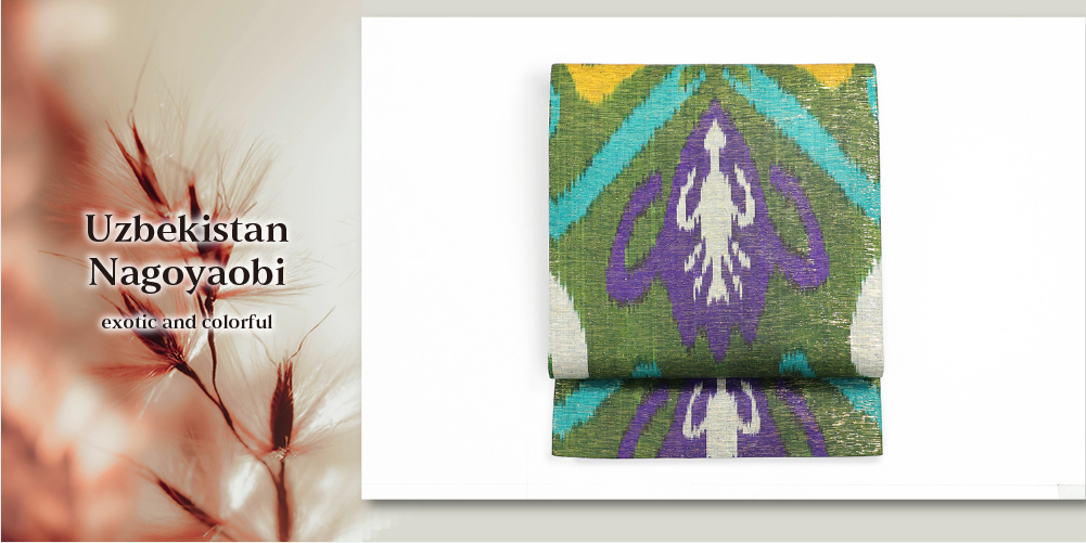 ウズベキスタンの伝統技術を生かした魅力的なイカット名古屋帯です。