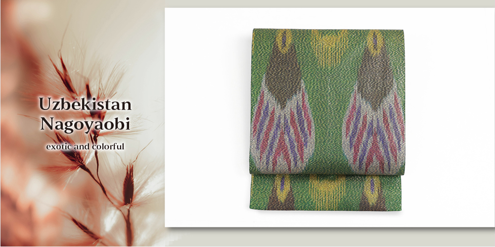 ウズベキスタンの伝統技術を生かした魅力的なイカット名古屋帯です。