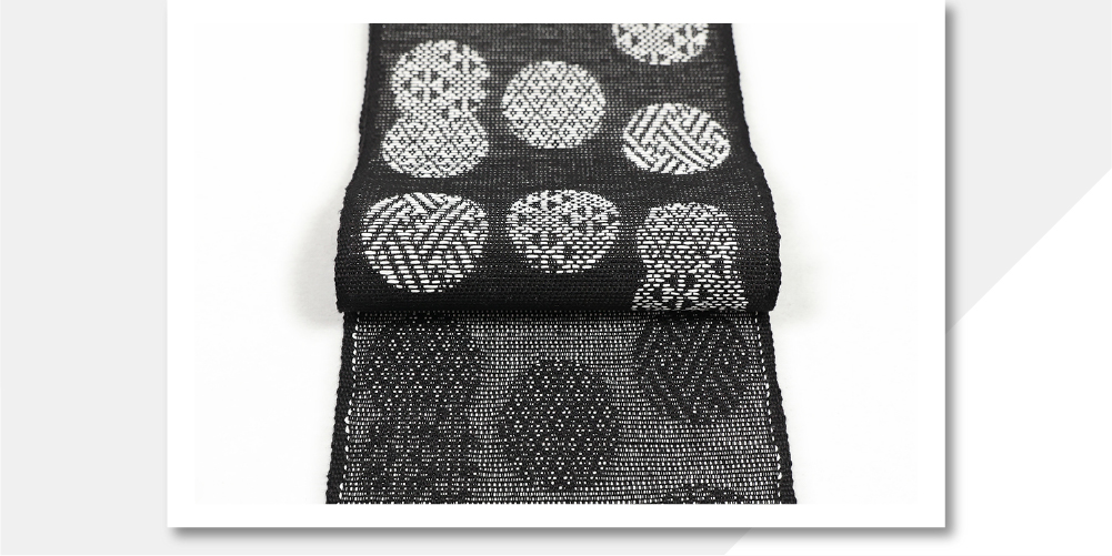 米沢織 近賢織物 麻 半幅帯 シャンヴル 円 黒×白