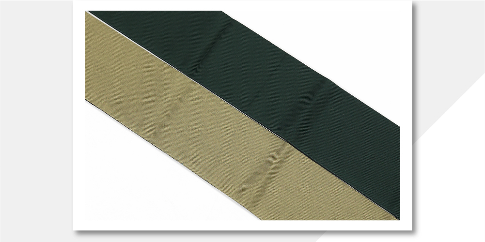 米沢織 近賢織物 宝来屋 綿 角帯 一見楽着 無地 深緑x濃若草 リバーシブル