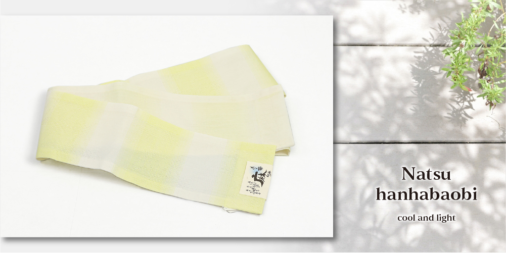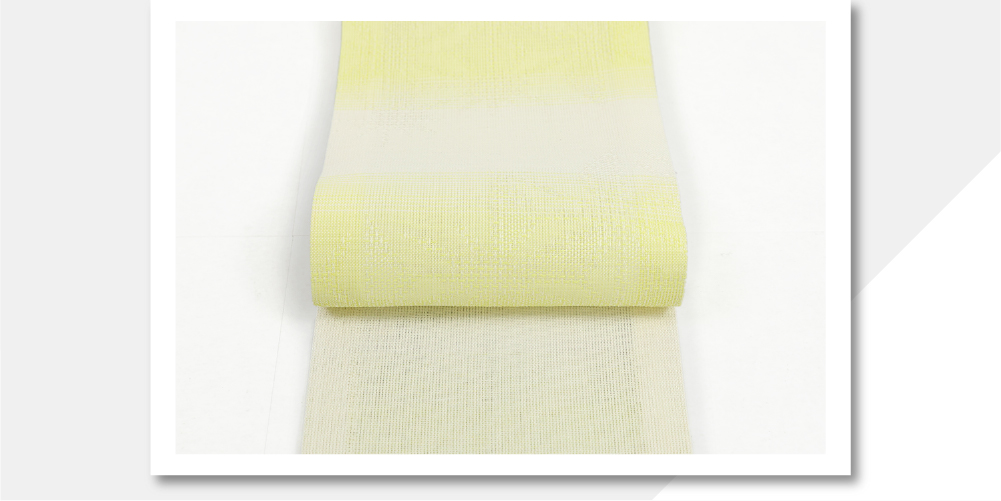 本麻 半幅帯 夏帯 麻 ぼかし縞 黄色