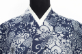 紺仁工房 綿麻紅梅 夏着物 越後型染 裂取更紗 菊 紺